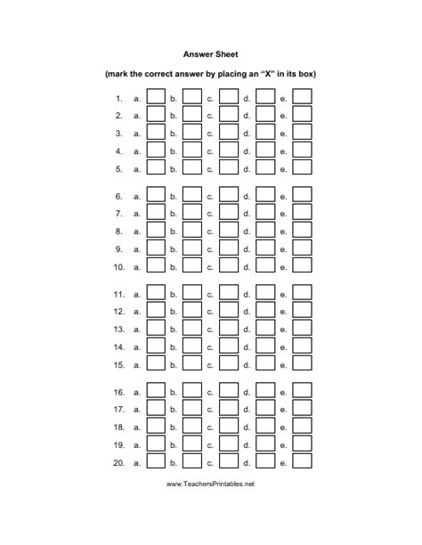 Download 20 question answer sheet Doc