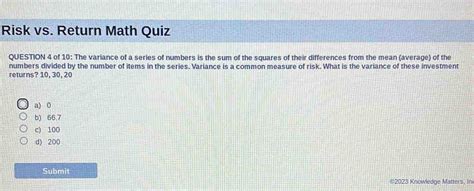Read Online Risk Vs Return Math Quiz Answers Reader